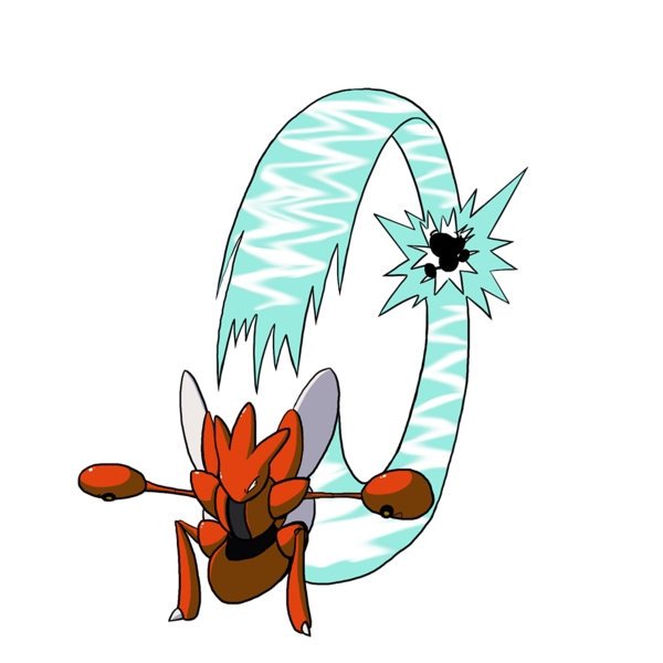 Scizor is a fantastic VoltTurn team candidate due to its great movepool and high Attack stat. In fact, when the popularity of VoltTurn rose, Scizor hit number 1 in the usage statistics. U-turn allows Scizor to hit opponents hard while maintaining good offensive pressure. Bullet Punch gets a STAB boost, Technician boost, and priority, making it very important on the set. Superpower breaks down walls such as Chansey, Blissey, and even Gastrodon, and can also hit opponents hard on the switch. Pursuit catches fleeing Psychic- and Ghost-type Pokemon, especially Latios and Latias. Quick Attack can be used over Pursuit, though Pursuit is generally the better option; however, Quick Attack hits Volcarona harder than any of Scizor's other moves. One can also opt to use a more specially defensive spread to better take special attacks, such as Hidden Power Fire from even 252+ Celebi, then OHKO it with U-turn. However, specially defensive Scizor will fail to KO Tornadus after Stealth Rock damage.